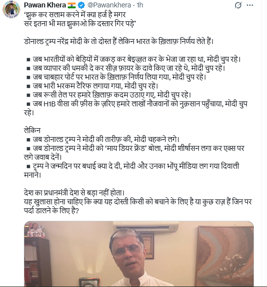 कांग्रेस नेता पवन खेड़ा ने ट्रम्प और मोदी की दोस्ती पर उठाये सवाल