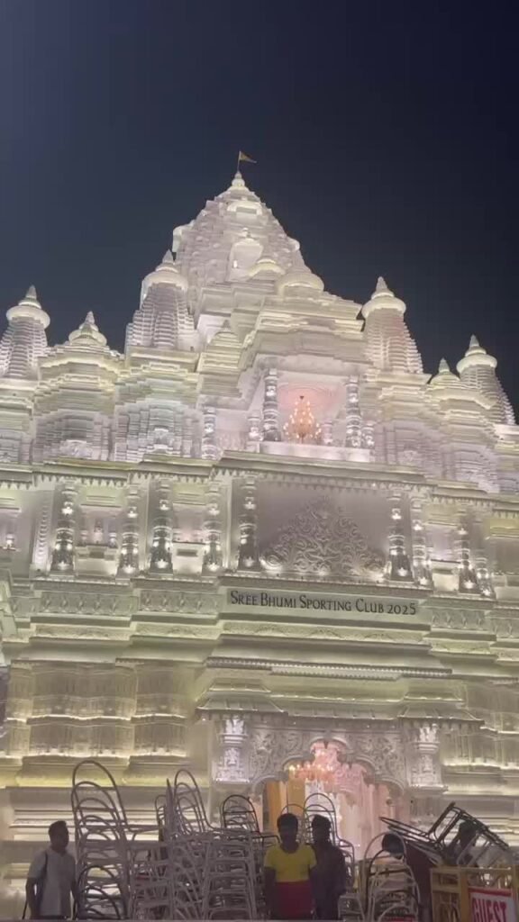 कोलकाता:कोलकाता में दुर्गा पूजा की तैयारी पूरी हो चुकी है जगह-जगह पर थीम पर आधारित पडाल बनाए गए हैं मां दुर्गा की प्रतिमा सभी पडाल में पहुंचने का सिलसिला शुरू हो चुका है। नवरात्रि के पहले दिन से ही लोग मां दुर्गा के पंडाल में मां दुर्गा का दर्शन करने के लिए भक्तों को भीड़ को लेकर खास तरह के इंतजाम किये गए है। इस बार दुर्गा पूजा कुछ खास तरीके से बनाया जा रहा है चारों तरफ सीसीटीवी कैमरे लगाए गए हैं अतिरिक्त पुलिस वालों की जवान गश्त लगा रहे है। शादी वर्दी में पुलिस के जवानों को भी गश्त के लिए योजना बनी है। जिससे कोई अप्रिय घटना न हो सके। इसको लेकर प्रशासन पूरी तरह से तैयार है महालया के पहले ही, आज शाम सुजीत बोस की श्रीभूमि स्पोर्टिंग एवं हाथीबागान दुर्गापूजा का उदघाटन करेंगी CM ममता, कई पूजा पाण्डालों का करेंगी वर्चुअल उदघाटन, श्रद्धालु कल शाम से दर्शन कर सकेंगे।
